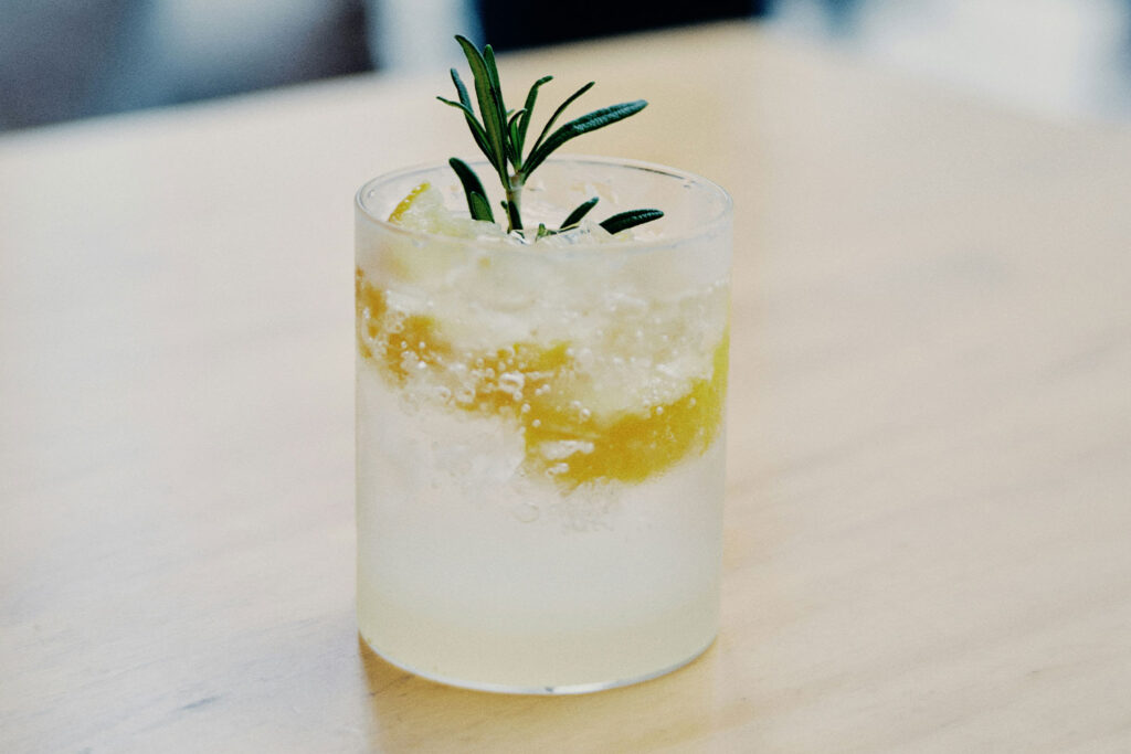 - Lime wedges, mint, rosemary, and NA bitters